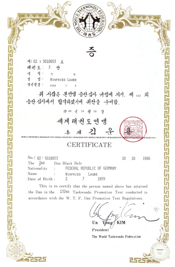 3. Dan Tae Kwon Do (WTF)