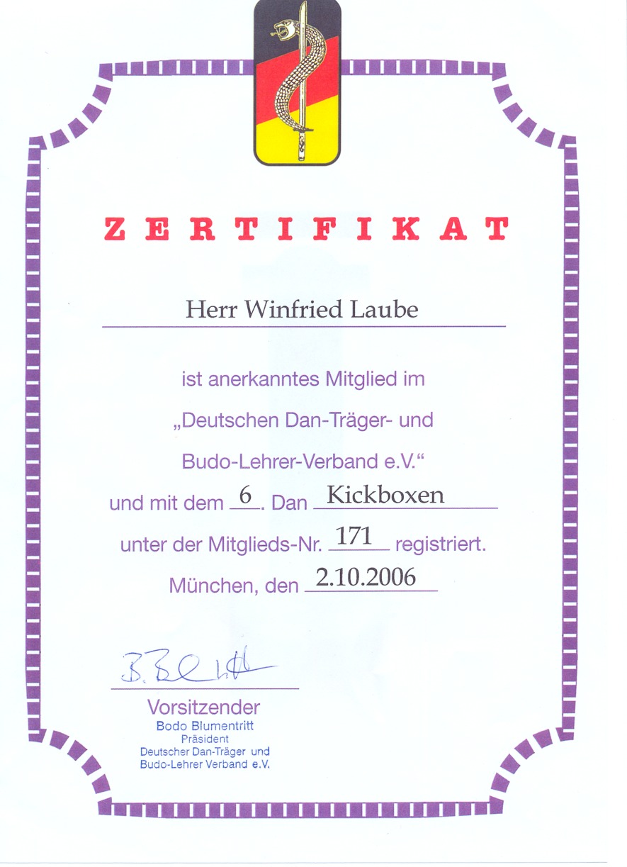 Großmeister DDBV e.V. / DJJR e.V. / DKKF e.V. / WAKO NL |